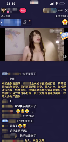 12月22日晚,热门平台快手一热门直播间突发“事故”,主播在直播过程中惊现明确成人内容,高峰期在线观看人数直冲近70万!无数网友表示“眼睛都看直了”,弹幕瞬间爆炸,直播间人气暴涨。